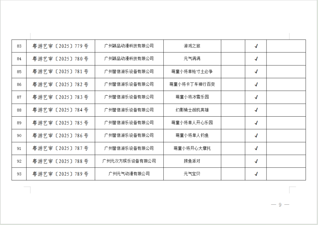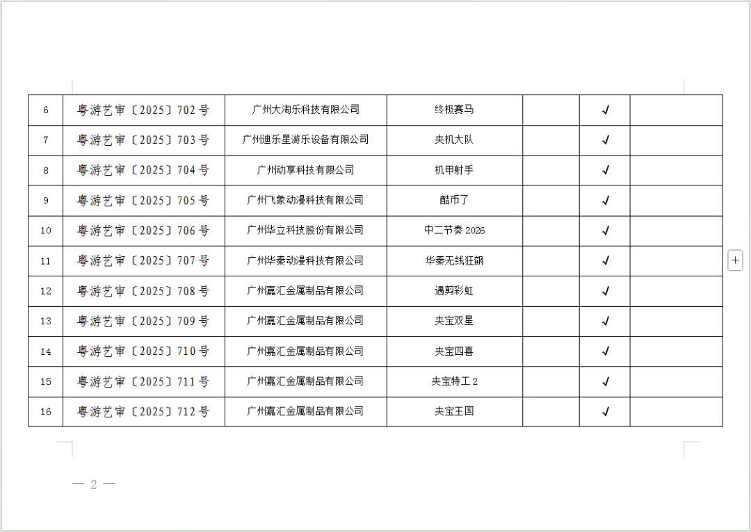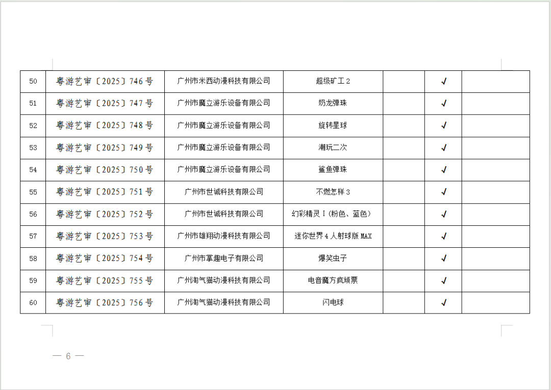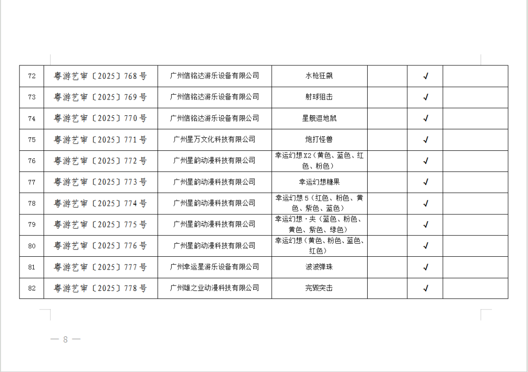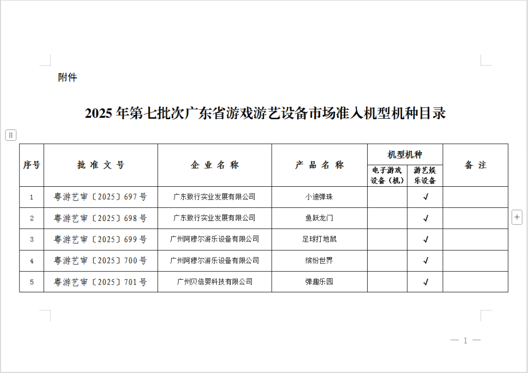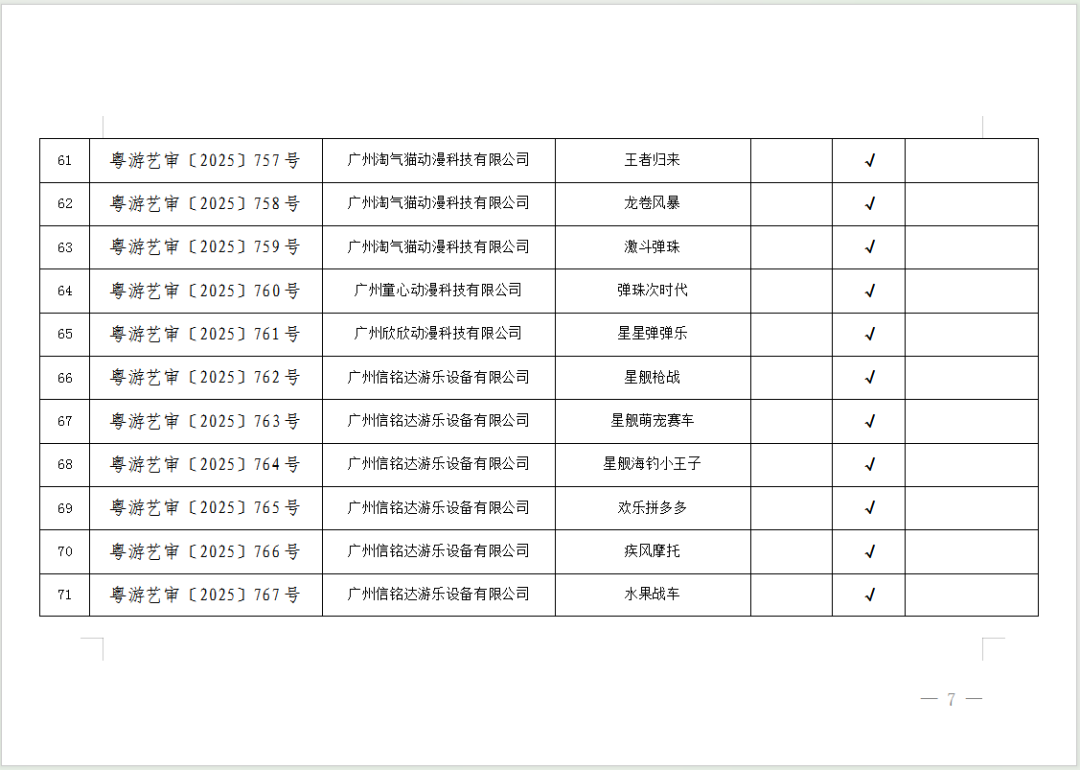 根据文化和旅游部《游戏游艺设备管理办法》等相关规定,现将我厅审核通过的《2025年第七批次广东省游戏游艺设备市场准入机型机种目录》向社会公布。本次审核通过的游戏游艺设备基本信息可登录广东省游戏游艺设备数据库(sh.gegia.cn)查询。