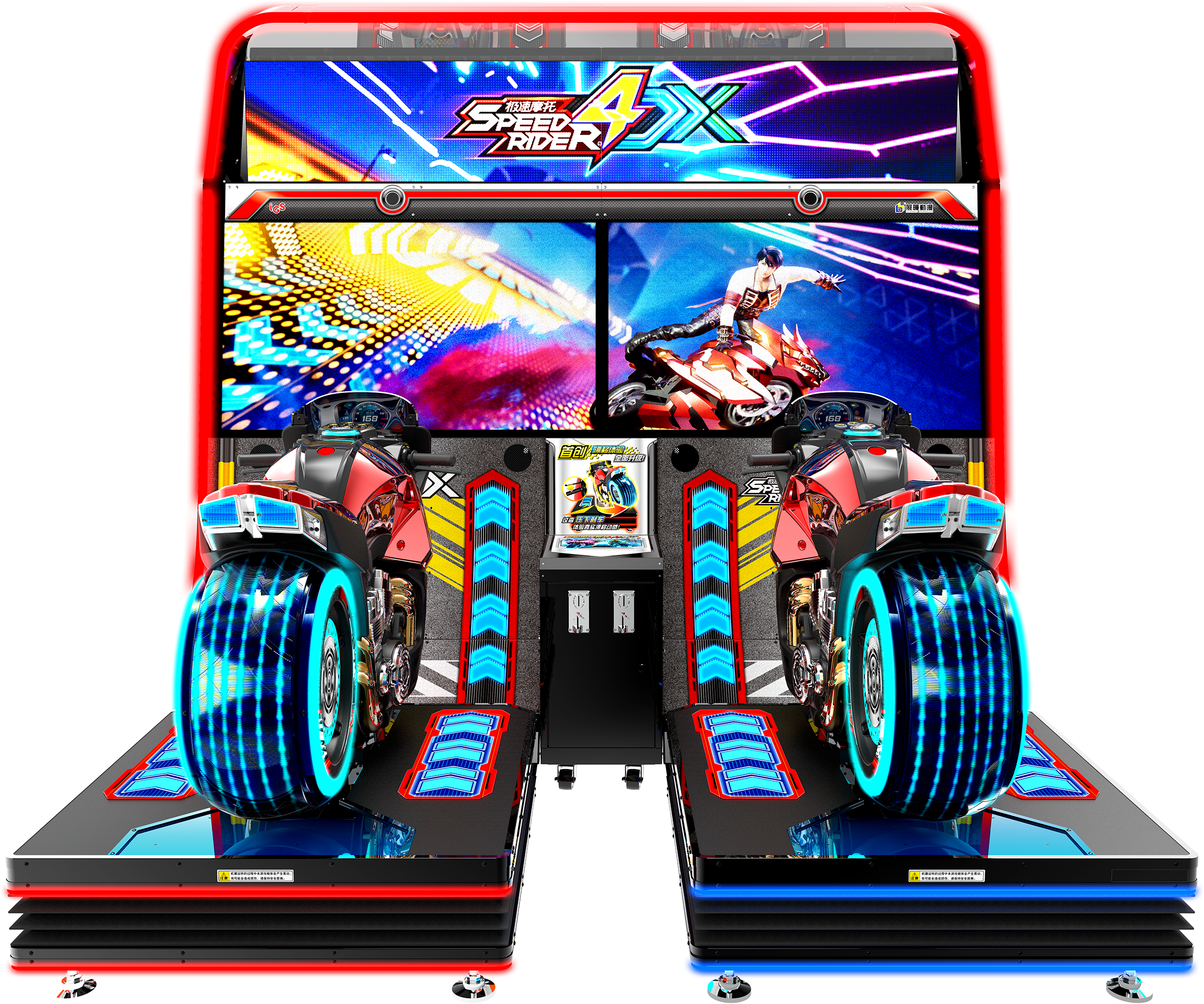<极速摩托4DX>是一款赛车竞速类机台游戏,本机台搭载全新漂移体感设备,模拟真实甩尾操作,配合红外线俯身感应加速、左右压车操控、动感平台、风速变化装置,让玩家体验飙速的快感。机台还配置环绕式音响,车体内外发出声效更加立体震撼。