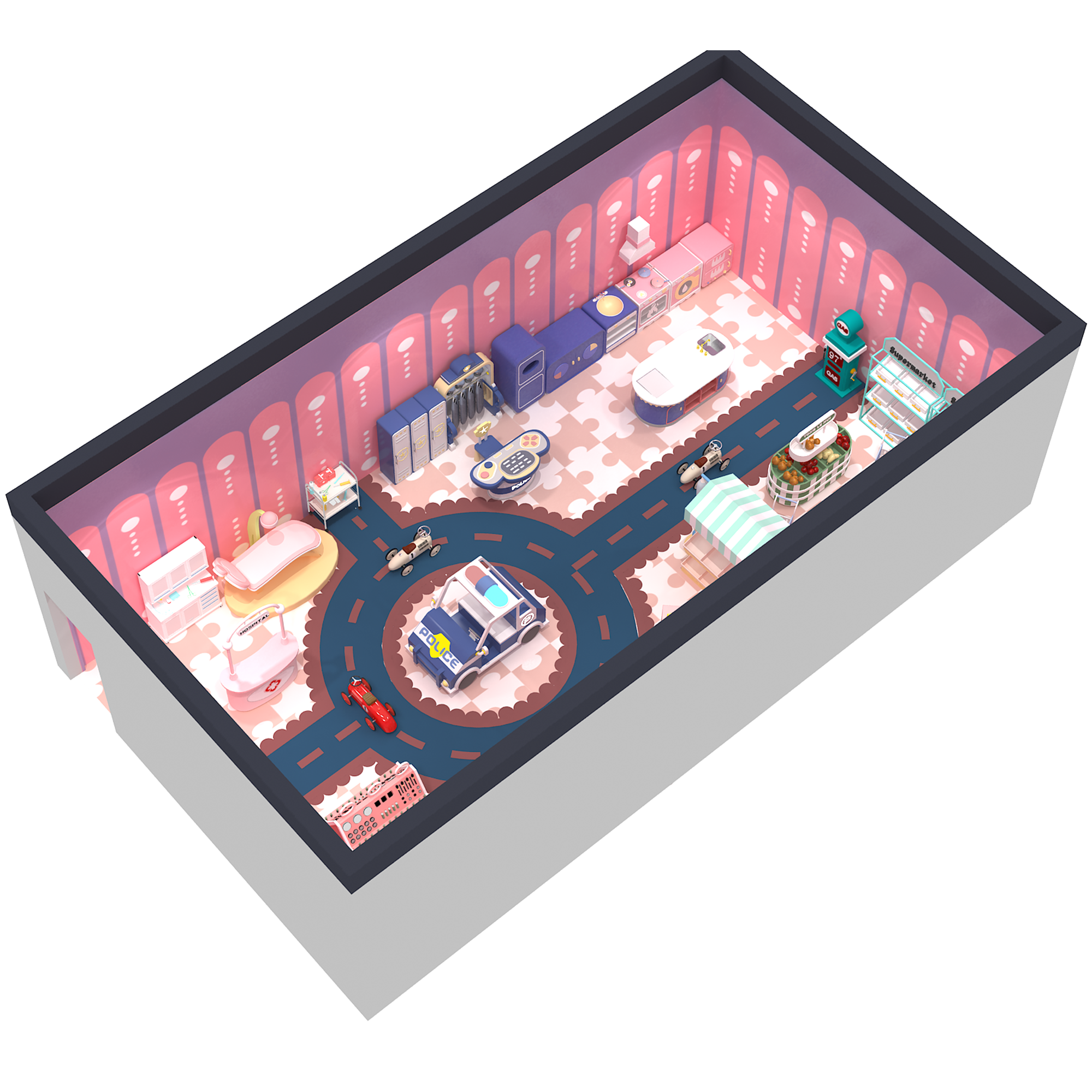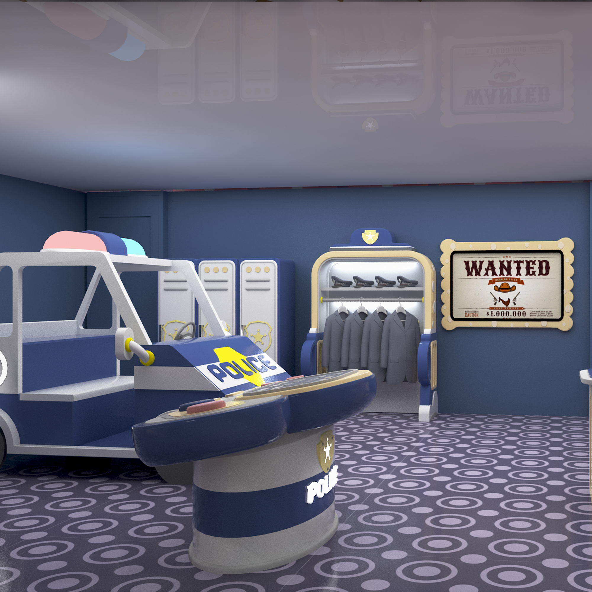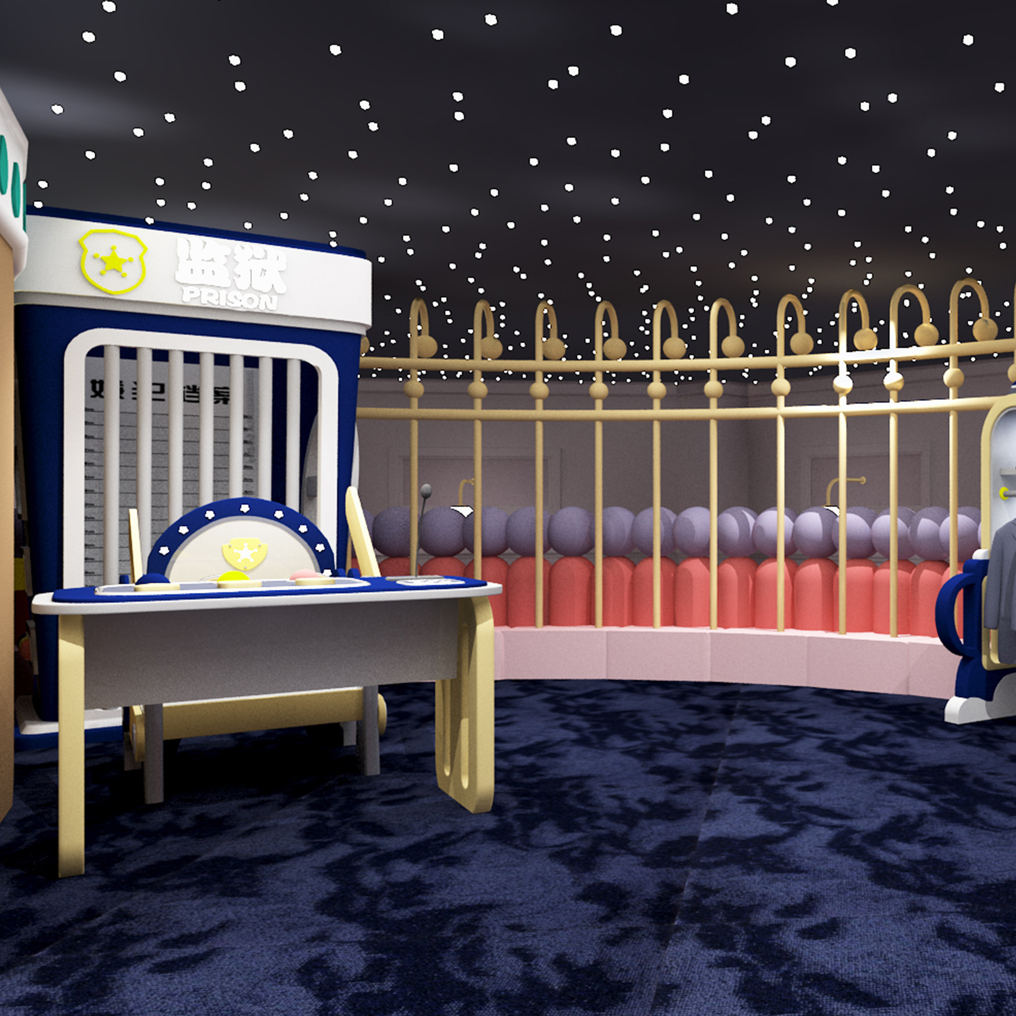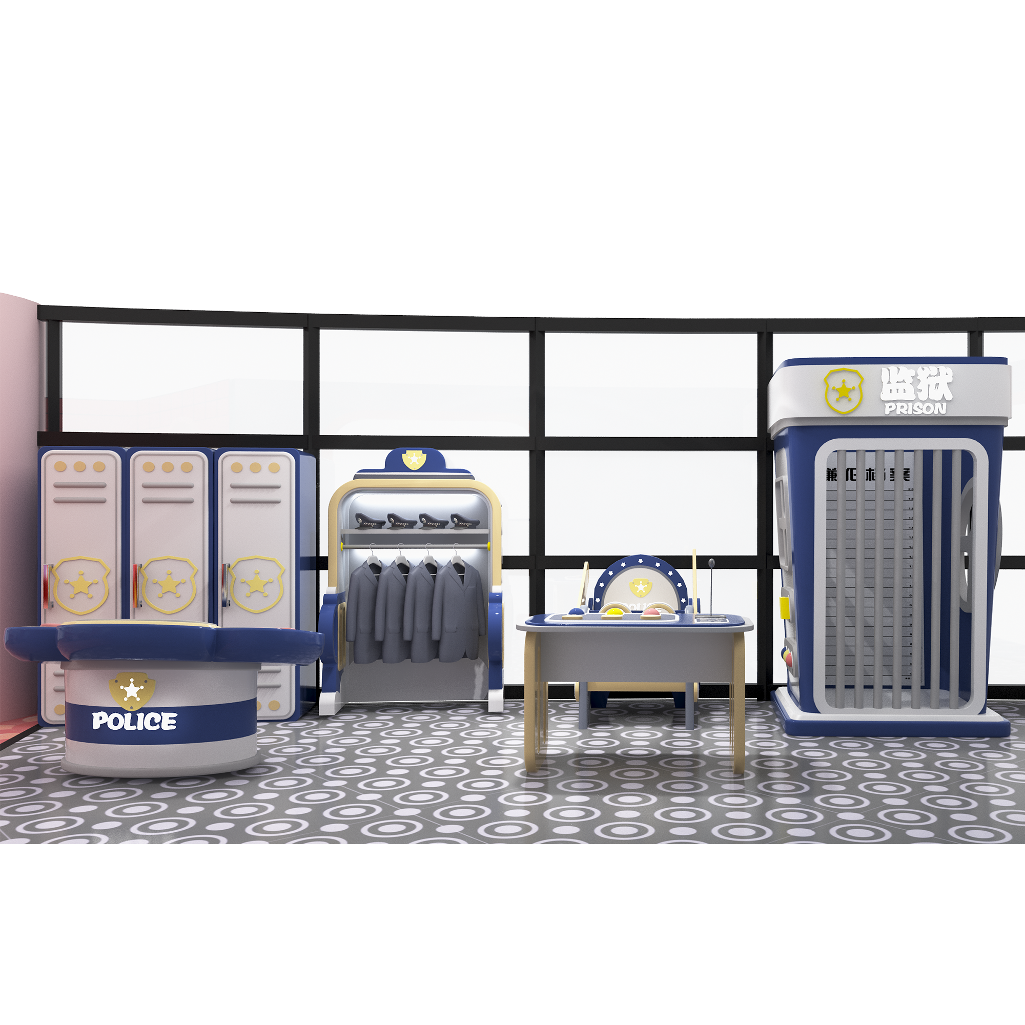儿童仿真警局 仿真警局套装 情景模拟报警审讯监狱抓坏人场景 木质烤漆 儿童乐园游乐场模拟道具设备审讯台警车枪械柜