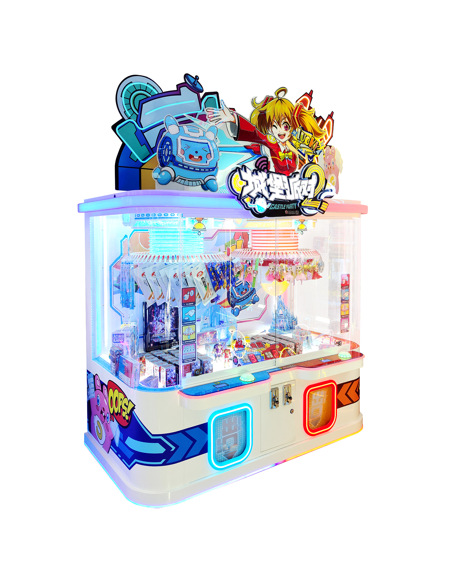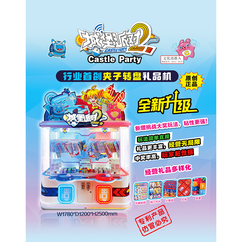1、全新专利产品,行业首创夹子转盘+推盘礼品机。